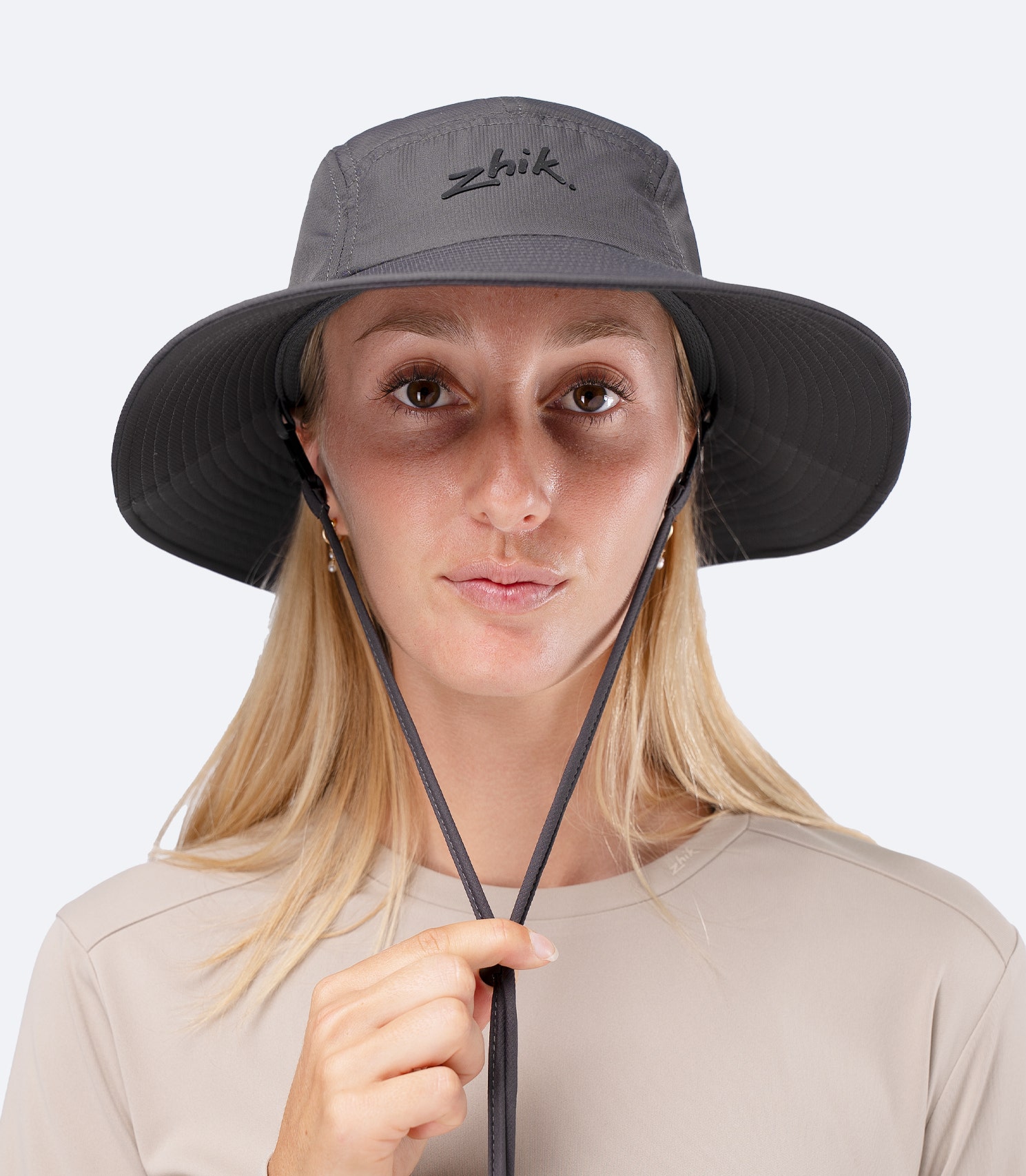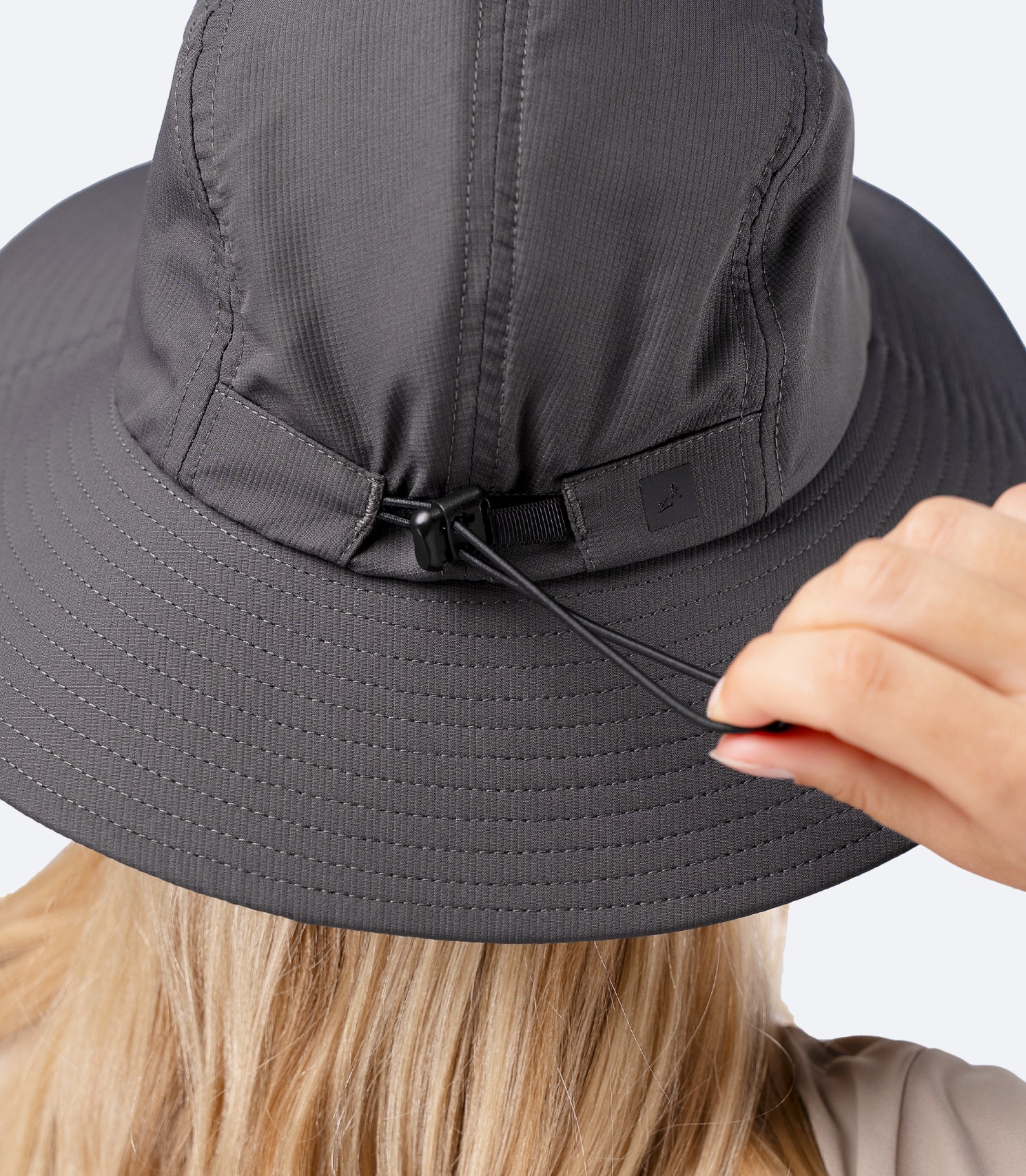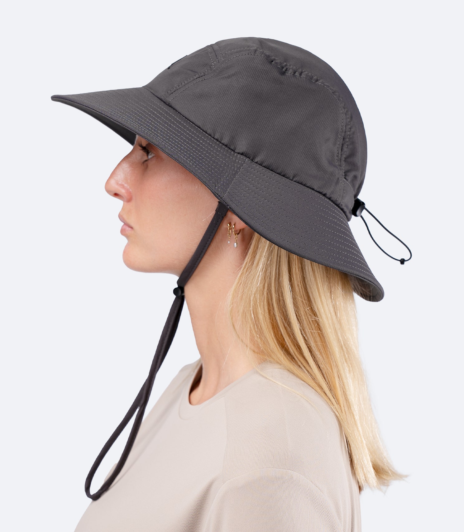 Klobúk Bucket Hat je určený na vodné športy a pobyt pri pobreží, kde štandardné pokrývky hlavy nestačia. Rýchloschnúca polyesterová konštrukcia odoláva striekajúcej vode a potu, zatiaľ čo stredne pevný 5 cm šilt poskytuje ochranu pred slnkom bez straty tvaru. Odnímateľný neoprénový remienok na bradu udržiava klobúk na mieste, keď sa zhoršia podmienky, zatiaľ čo integrované sieťované panely na uši udržiavajú prúdenie vzduchu a čistý sluch. Nastaviteľný systém strihu uľahčuje nastavenie pohodlia. Účelovo vyrobený na aktívne používanie od vody po súš.
